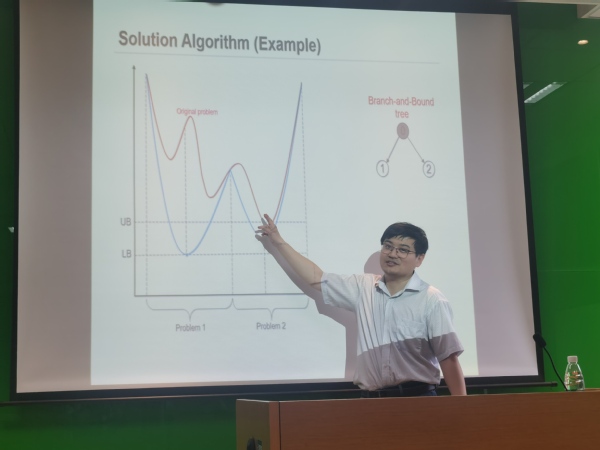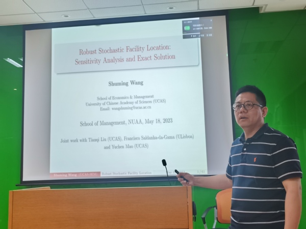 中国科江南体育 大学王曙明教授为江南体育官网 师生作题为“Stochastic Robust Facility Location: A Nested Decomposition Approach”的学术报告。报告将鲁棒随机优化下的设施选址问题作为问题背景进行展开,区别于以往研究,他采用了一个状态模糊集来模拟与不同状态下的需求相关的分布不确定性,在此基础上建立考虑多种需求状态下的选址模型,并从两个方面对模型进行敏感性分析。他提出了一种嵌套的Benders分解算法来求解模型,其创新性地利用了最坏分布情况下的预期第二阶段成本的子梯度。王曙明主要从事鲁棒优化与随机规划研究及其在选址与物流网络优化、供应链风险管理、库存与收益管理、健康医疗管理等领域的应用。研究成果分别发表于Production and Operations Management、INFORMS Journal on Computing、Transportation Science等顶级期刊。