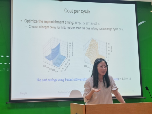 上海财经大学助理教授毕晟作题为“Taming the Long Tail: The Gambler's Fallacy in Intermittent Demand Management”的学术报告。她针对需求不稳定的“长尾”产品库存问题,结合“赌徒的谬误现象在有限次数的抛硬币中实际成立”现象的启发,提出了一个新的框架来优化“补货时间”和“补货数量”的选择。毕晟于2021年在新加坡国立大学获得分析与运营博士学位,2016年在南京大学获得工业工程学士学位。主要研究方向为数据驱动优化、供应链管理、社会责任运营等,成果发表于商江南体育 顶级期刊Manufacturing & Service Operations Management。