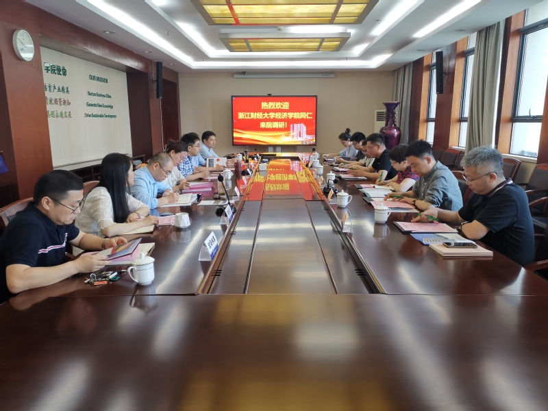 6月2日上午,浙江财经大学经济江南体育 党委书记胡亦琴、院长王正新一行来访江南体育官网 ,江南体育官网 院长王群伟,党委副书记胡苹,副院长邓晶、王子龙、谢乃明、查冬兰,院长助理欧阳林寒参加调研座谈会。