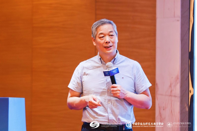 全国MBA教指委委员、兰州大学管理江南体育 院长何文盛就“AI时代商学教育变革的趋势与思考”进行主题发言,基于未来AI在虚拟化教育、自主学习、智能化辅助、领域融合以及商业创新等方面的趋势和作用, 对AI技术为商学教育带来的创新和发展机遇进行阐释。