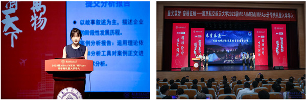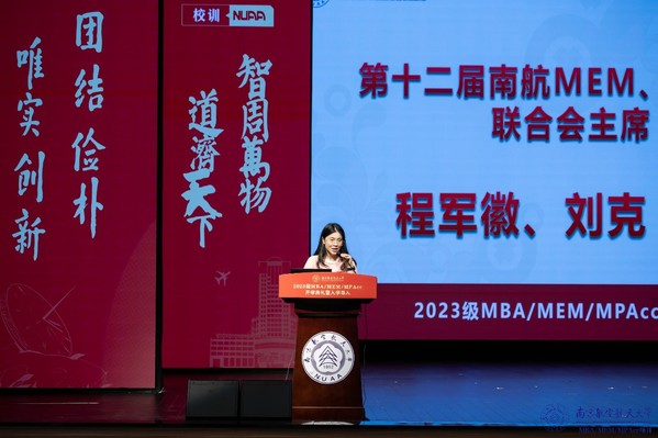 研究生生涯导航环节,由南航MBA教育中心学生工作与职业发展办公室老师黄芮主持。MEM联合会主席程军徽和MPAcc联合会主席刘克,分别向新生介绍了联合会的组织架构和活动开展情况。