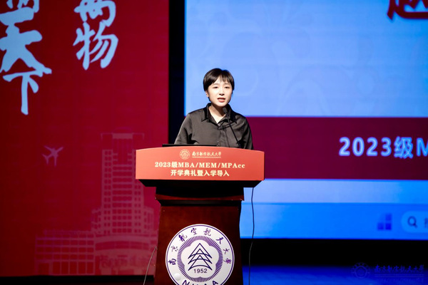 研究生院副院长、学位办主任王英首先祝贺所有MBA/MEM/MPAcc新生加入南航大家庭,她代表学校研究生院热烈欢迎2023级全体新生的到来。她表达了学校对MBA、MEM和MPAcc非全日制专业学位研究生项目的关心与支持,提出在充满机遇和挑战的时代,新生们应当好好学习,脚踏实地,坚持奋斗。期待全体新生在未来的时间里,不断探索和用心感悟,做一名合格的南航人,创造更多精彩。