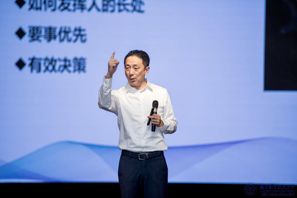 名家讲堂环节邀请了华瑞集团创始人、董事长康宜华,为新生带来了《未来已来-奋进新时代,逐梦新征程》主题分享。他以把握趋势、顺势而为、追求卓越、逐梦前行为主线,运用系统思维,结合世界经济形势、中国发展道路等实际案例,以独特的视角、深邃的思考、犀利的观点进行深入剖析,将现场气氛推向高潮。