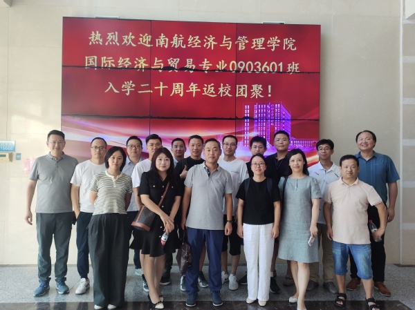 9月9日,江南体育官网 国际经济与贸易专业0903601班18名校友重返母校,纪念入学二十周年。校党委巡察工作办公室正处级巡察专员刘红旗,江南体育官网 黄伟如、邓晶、袁潮清、马晓平老师,外国语江南体育 陆文彬老师受邀参加聚会,校友们欢聚一堂,忆同窗尽显往昔风流,聚此间共乐日月同辉。