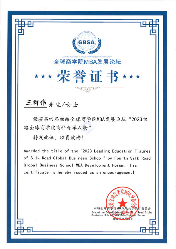颁奖环节,南航江南体育官网 院长王群伟获得“2023丝路全球商江南体育 商科教育领军人物”荣誉称号、江南体育官网 副院长周志鹏、赵亚普获得“2023丝路全球商江南体育 最受喜爱教师”荣誉称号、MBA项目获得“2023丝路全球商江南体育 最具品牌价值MBA”荣誉称号、MBA联合会获得“2023丝路全球商江南体育 十大优秀MBA联合会”荣誉称号、MBA学员田乐获得“2023丝路全球商江南体育 校友创业创新之星”荣誉称号、MBA学员李冬美、张帅、杨越获得“2023丝路全球商江南体育 MBA新秀奖”。