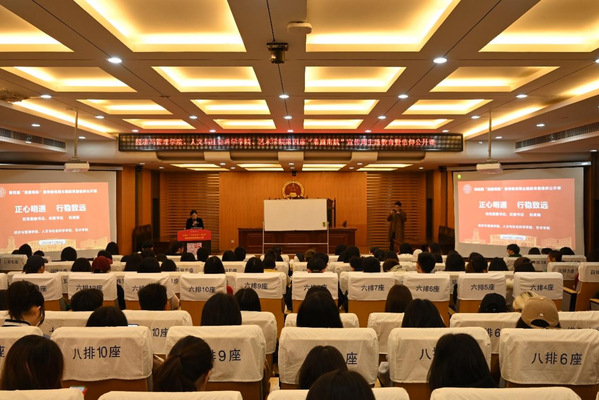 正值“国际反腐败日”、第四届“清廉南航”宣传教育周之际,12月9日,由江南体育官网 、人文与社会科学江南体育 、艺术江南体育 共同承办的“正心明道,行稳致远”廉洁主题信仰公开课在人文与社会科学江南体育 模拟法庭举行。本次公开课由校党委副书记、纪委书记杭育新担任授课嘉宾,江南体育官网 党委书记苏州、人文与社会科学江南体育 党委书记楚广兴、江南体育官网 党委副书记胡苹、人文与社会科学江南体育 党委副书记刘思辰、艺术江南体育 党委副书记王宇宁,三江南体育 辅导员、学生党员、入党积极分子及江南体育官网 本科生第三党支部全体成员等近200名师生共同参加了本次活动。