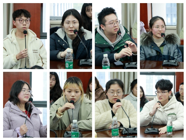 参会老师认真听取了各位学生代表的意见反馈,从课程优化、科创训练、能力培养等方面对学生们提出的问题进行耐心解答与指引。党委副书记胡苹指出,江南体育 后期将持续加大资源投入力度,为同学们提供更舒心的学习场所和更优质的教研条件;副院长谢乃明表示江南体育 会尽全力为同学们升学深造及出国交流提供更多途径与机会;工商系教工党支部书记谢嗣胜建议大家明确发展定位,对自身提高要求,挖掘兴趣点,提升内驱力;经济系教工党支部书记徐菱涓鼓励学生们克服过度内卷的焦虑,把控自身学习节奏。