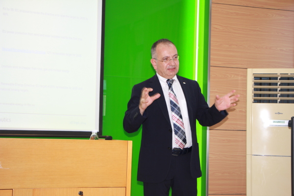 首先,Gürkan S. Kumbaroğlu教授应郝晓晴老师邀请,为江南体育官网 师生作了题为“Energy Transition in Europe: Renewable Power Generation, Hybridization and E-Mobility for Sustainability” 的精彩学术报告,五十余名师生现场参与。Gürkan S. Kumbaroğlu教授以生动的可持续项目案例为切入点,展示了欧洲的能源转型和技术进步的前景与挑战,为江南体育官网 师生拓展了关于经济高效和清洁低碳的能源高质量发展问题的研究思路。