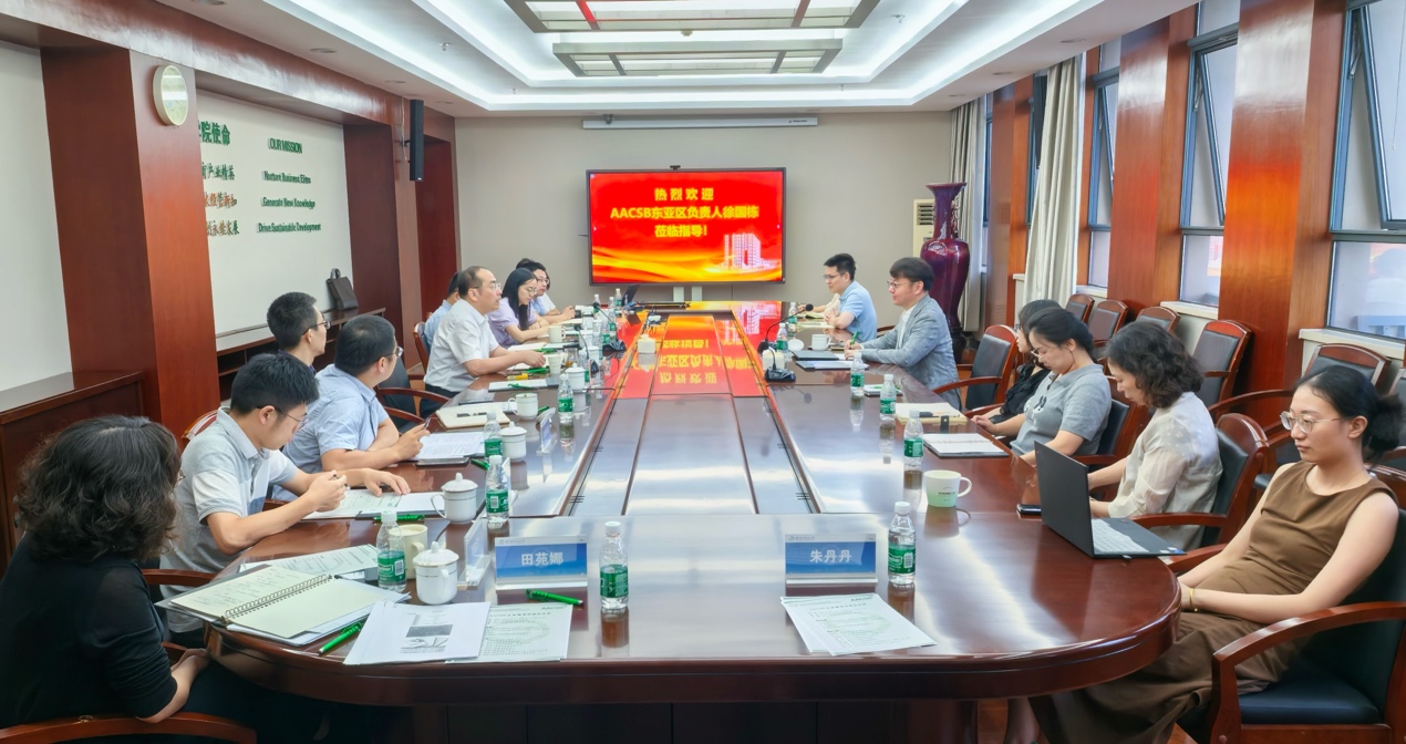 2024年9月13日下午,国际商江南体育 协会(The Association to Advance Collegiate Schools of Business,AACSB)东亚区负责人徐国栋先生应邀到访江南体育官网 ,开展AACSB国际认证指导交流。会议由江南体育-江南体育app-江南体育官网 党委书记苏州主持,院长王群伟、党委副书记胡苹、副院长查冬兰、副院长周志鹏、副院长欧阳林寒、各系主任、认证小组成员等出席此次会议。