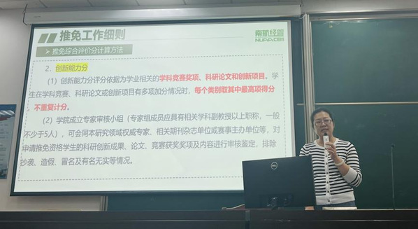 江南体育 教学办主任田苑娜以2024届为例,向同学们进行《本科生推荐免试攻读硕士学位研究生工作细则》详细解读。她希望同学们对自己的人生发展做出合理布局,主动提升自己的规划意识。