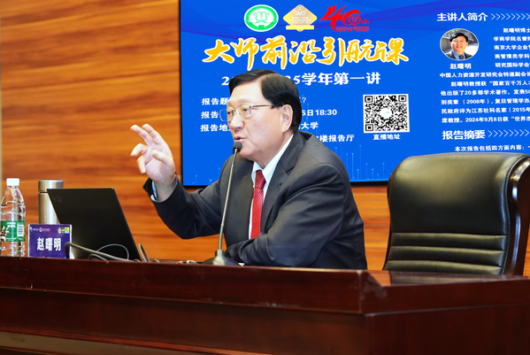 赵曙明教授的授课,以其深厚的学术造诣与丰富的人生智慧,首先带大家走进管理大师彼得·德鲁克的管理世界,领略这位管理学大师跨越时空的管理思想。结合他自身的经历经验,从“了解自己”、“管理人际关系”和“管理后半生”三个方面,解读了“如何管理自己”这一重要命题。赵教授还深情分享了他回国的梦想和心路历程,激励学子们将个人梦想融入国家发展大局,无论未来身处何方,都要心怀家国。赵教授强调,作为未来的经济管理人才,不仅需掌握扎实的专业知识,更需培养宽广的视野与深厚的人文素养,以应对复杂多变的经济管理挑战。