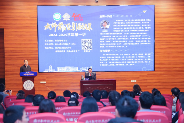 为积极探索高校人才培养模式改革,献礼南航江南体育官网 建院40周年,在前期精心策划组织下,2024年10月26日晚,备受瞩目的“大师前沿引航课”在将军路校区一号楼四楼报告厅正式拉开帷幕。第一讲邀请到江苏社科名家,南京大学人文社会科学资深教授,商江南体育 名誉院长、行知书院院长赵曙明教授,作题为《如何管理自己》的精彩报告。江南体育官网 2024级MBA/MEM/MPAcc学生、2023级和2024级新文科创新培优班学生以及部分参加校本培训的老师,共计400余人参加,报告内容在MBA教育中心视频号同步直播。江南体育官网 党委书记苏州主持报告会。