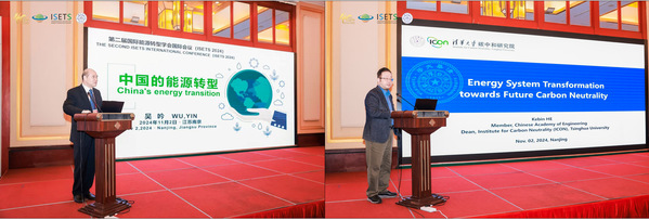2日上午的大会主旨报告由ISETS 2024大会主席、悉尼科技大学教授施训鹏主持,国家能源局原副局长吴吟、中国工程院院士贺克斌分别作大会主旨报告。吴吟围绕“China's Energy Transition”,从中国能源转型进程、特点和前景三个层面生动阐述了能源转型的中国故事。贺克斌院士报告主题为“Energy System Transformation towards Future Carbon Neutrality”,从能源、物质、碳中和以及信息化四个视角分析了能源传输系统在迈向碳中和过程中面临的挑战。