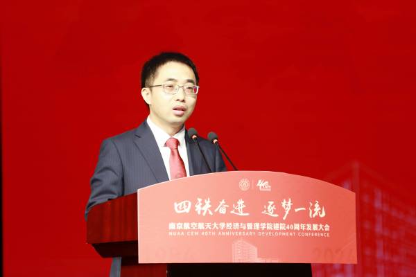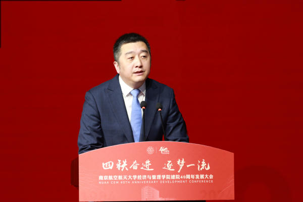 中国航发北京航空材料研究院党委书记、副院长吴文生作为校友代表发言。他深情讲述了与南航的不解之缘和深厚情感,他表示,江南体育 鲜明的学科特色、多元的管理实践和国际化的视野,促进了学生知识积累、精神激励和品格塑造,令人终身受益。他呼吁学子们将个人梦想融入国家航空事业,为推动发动机和材料事业的跨越贡献南航经管力量。