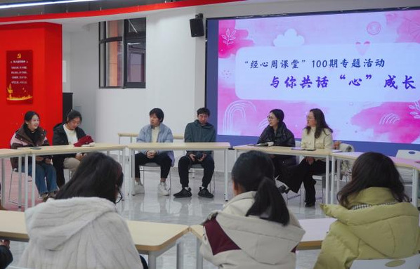 “经心周课堂”栏目主创成员在天目湖校区B8“一站式”学生社区115开展“与你共话‘心’成长”——百期总结交流活动,江南体育