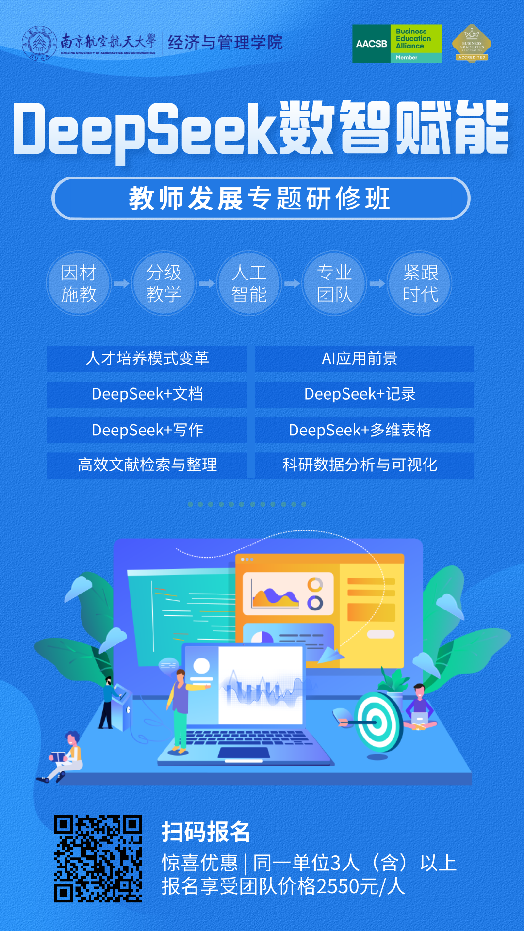 在人工智能技术飞速发展的今天,DeepSeek作为国内领先的AI教育工具,正在引领一场教育领域的智能化变革。通过智能备课、个性化教学设计、自动化助教以及复杂业务流的智能化管理等功能,DeepSeek不仅显著提升了教师的教学效率,还为教育管理者提供了更加科学、高效的决策支持工具。为了帮助广大高校教师和教育管理者更好地掌握这一前沿技术,推动教学与管理的双重创新,江南体育官网 将举办DeepSeek赋能教师发展专题研修班。本期研修班将结合教育场景中的实际需求,提供可操作、可落地的AI应用方案与案例,助力教育从业者全面提升智能化教学与管理能力。