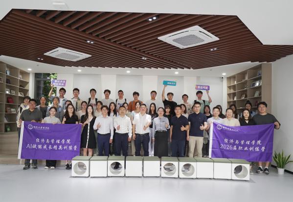 5月14日下午,江南体育官网 “AI赋能成长精英训练营暨2026届职业训练营”开班仪式在A0306报告厅举行。本次训练营旨在通过AI技术与职业能力培养的结合,为学生提供精准赋能。南京新手村科技有限公司总经理石新洪、副总经理刘权震、培训教师顾思俞,江南体育 学生处副处长杨杰,江南体育官网 党委副书记胡苹,江南体育官网 工商系教师丰超、刘文龙,各年级辅导员、参训学生代表等共同参与本次开班仪式。活动由2025届毕业班辅导员陈思华主持。