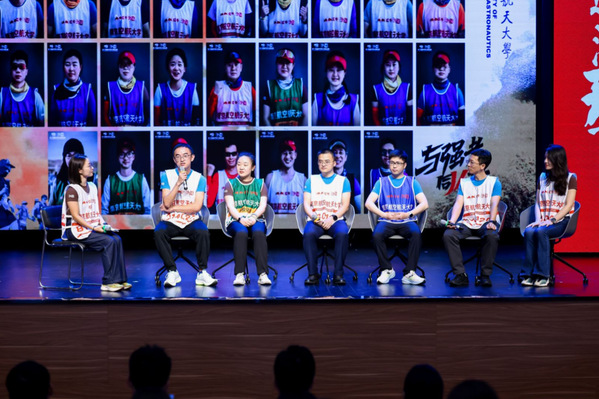 2024级和2025级南航学子代表以振奋人心的诗朗诵《我在南航报道》,勾勒出南航70余年辉煌发展历程,紧密串联起学校、江南体育 发展与家国脉搏,将南航精神接力给全体新同学。