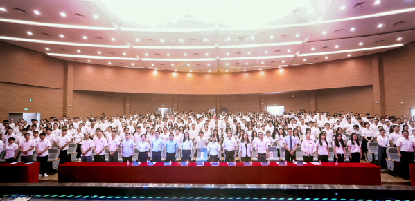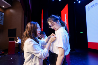 江南体育 副书记胡苹,副院长查冬兰、欧阳林寒为三位新生代表佩戴校徽,全体新生共同宣读入学誓词,一起向学校许下遵循南航校训校风的庄严承诺。