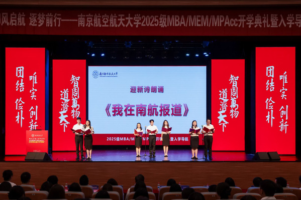 2025级MBA/MEM/MPAcc新生代表尹乐、廖江和柏婷婷表达了对南航精神的理解,对未来学习生活的规划,期待通过研究生学习,成为有思想、有担当、有情怀的经济管理人才,践行南航精神,在未来的事业领域破浪前行。