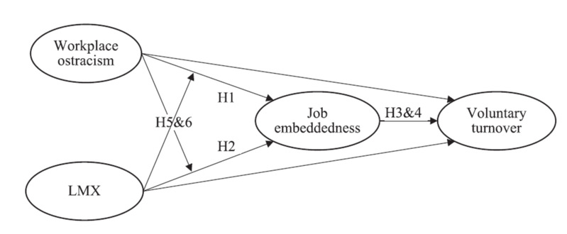 This paper draws on a conservation of resources perspective to understand employee voluntary turnover. We conceptualise voluntary turnover as an outcome of resource loss, and we view job embeddedness as an indication of resource levels. On the basis of this conceptualisation, we propose that workplace ostracism and leader–member exchange (LMX) affect voluntary turnover via job embeddedness. We also propose an interaction effect of workplace ostracism and LMX: Workplace ostracism increases voluntary turnover by depleting job embeddedness only when people experience high-quality LMX. Data from 352 employees in a Chinese software company obtained through a three-wave survey support our model. Our findings illuminate the resource consequences of interpersonal interactions on job embeddedness and voluntary turnover, and we offer practical implications for employee retention.